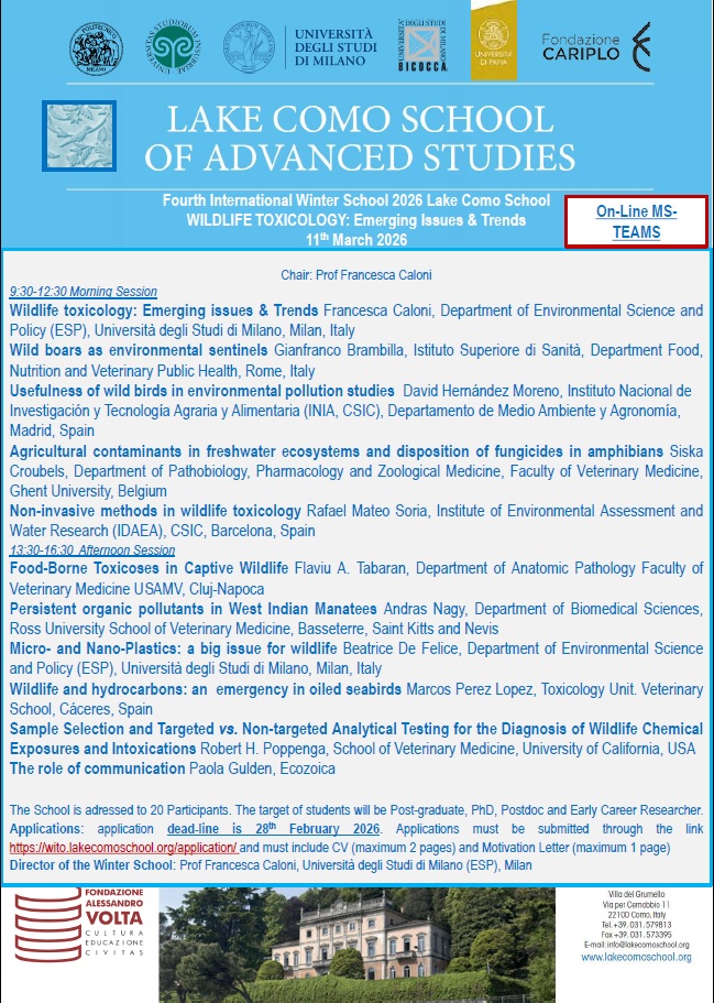 Fourth International Winter School 2026 Lake Como School WILDLIFE TOXICOLOGY: Emerging Issues & Trends 11th March 2026